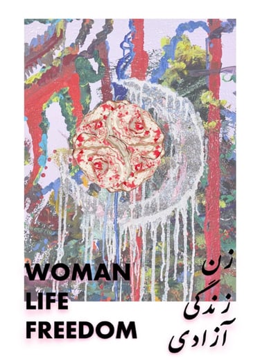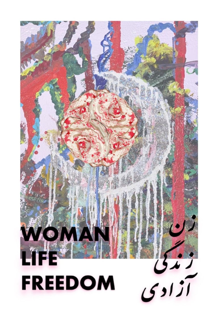 RiP Mahsa Amini 🙏 I created this poster combining the mural from mi wall, originally mi abstract interpretation of Goodnight Moon, with origami roses I folded and painted to represent blood splattered over purity. The roses were originally made for a practice painting I did of Andy Warhol’s gun, extending out from the barrel. The moon and roses combined took on a new meaning, reversing the Islamic Crescent and star to represent flipping the script on old books and ideologies, to pave a new path forward and write a new future that turns page from HIStory into one that includes HERstory. Honoring the beautiful elements of the old and creating a new system of balanced accountability, equal rights, freedom of expression, fair pleasure, pay and play. Life can and should be safe and beautiful for all. ☪️ ☯️🐆🐫✨🌙